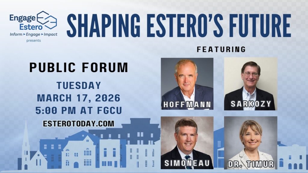 The forum is free and open to the public. Seating is limited, and reservations are required. You can reserve your spot on the Engage Estero website at https://esterotoday.com/event/march2026/
